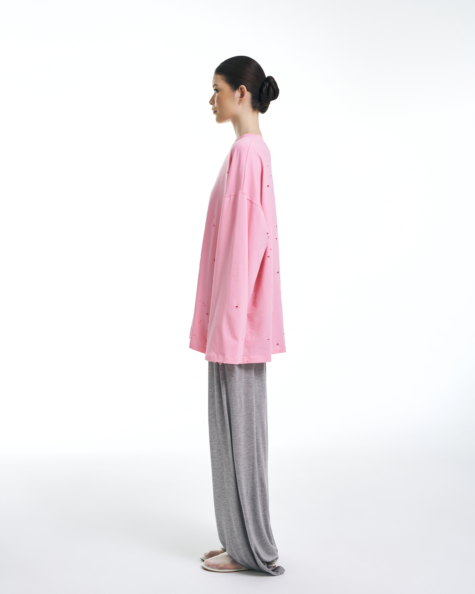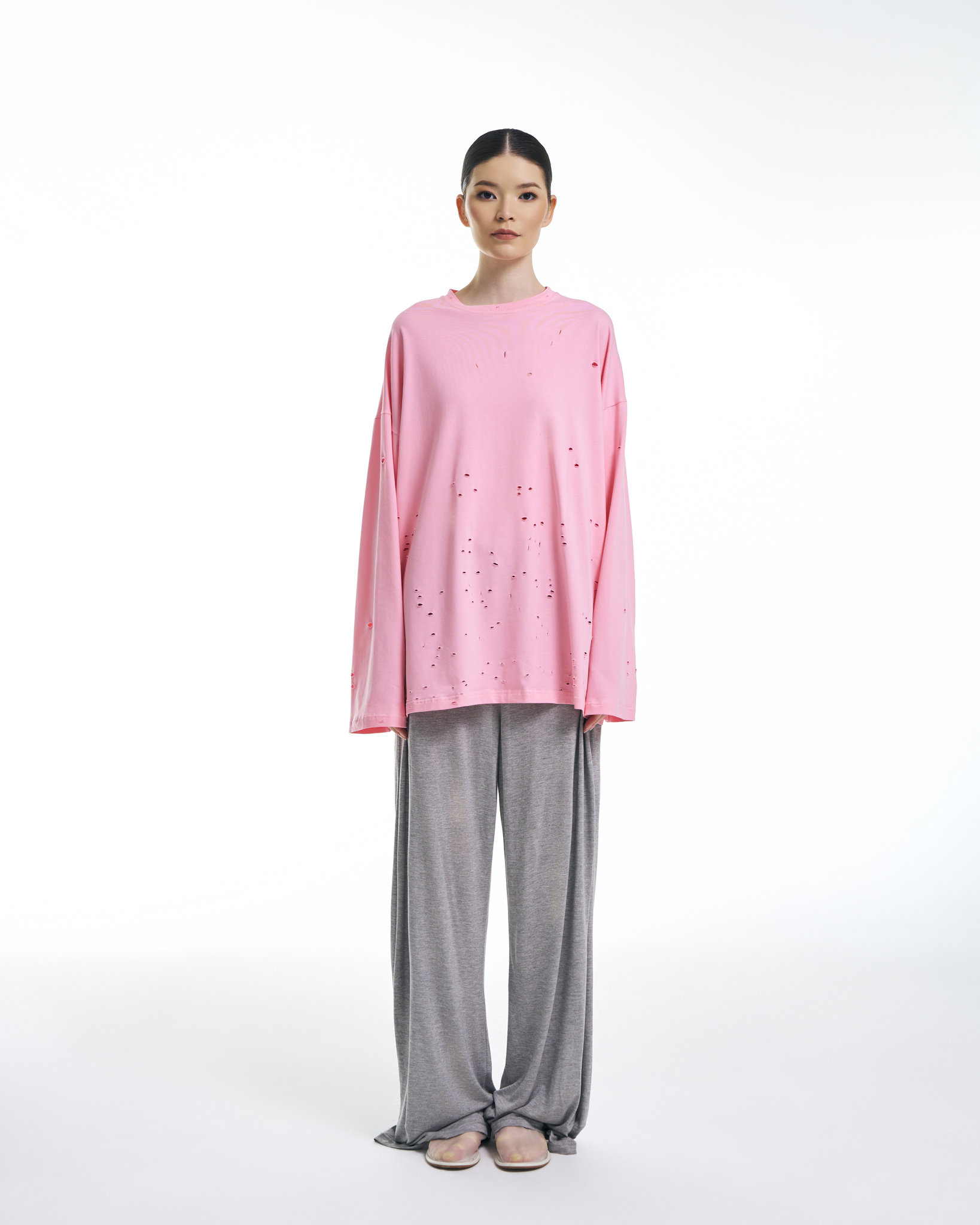 Лонгслив "No name" (Ноу нейм) свободный рваный розовый
